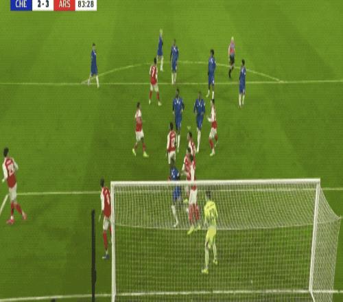 第84分钟,切尔西球员内托开出角球,阿森纳门前一片混乱,凯帕出击倒地,加纳乔凌空射门,梅开二度。2-3。